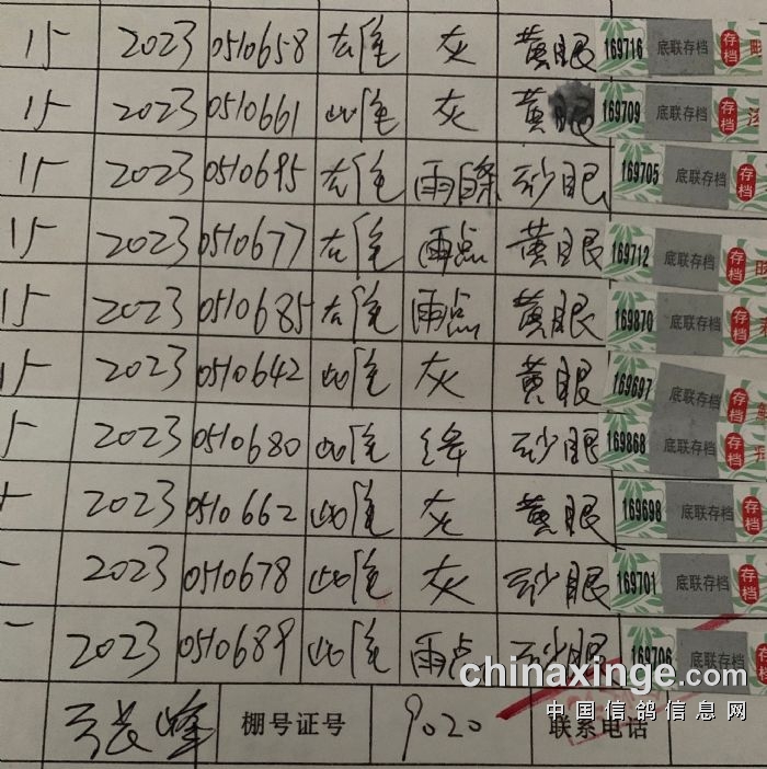 大特比季军 鸽主 张峰 赛鸽足环号码2023-15-0510685