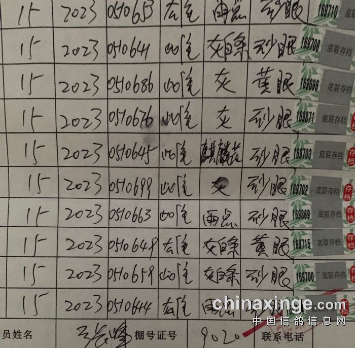大特比亚军 鸽主 张峰 赛鸽足环号码 2023-15-0510686