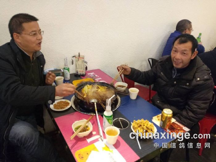 黄总为表示感谢贺氏农民鸽友请吃特色串串并赠予自己的8只爱鸽扶持帮助其养鸽