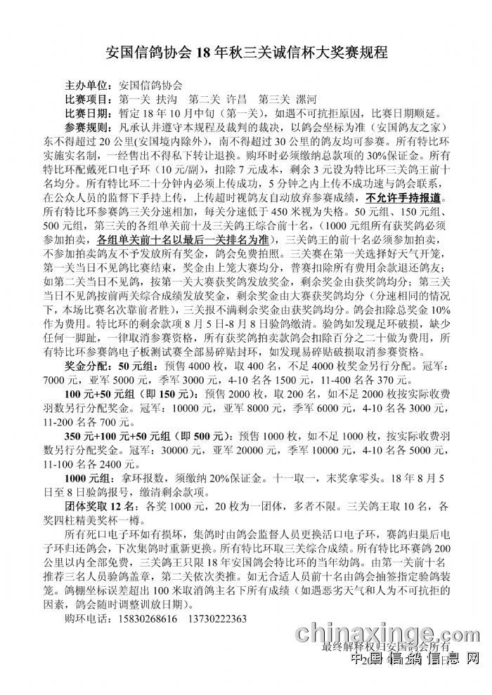 安国市信鸽协会2018年秋季三关诚信杯大奖赛规程