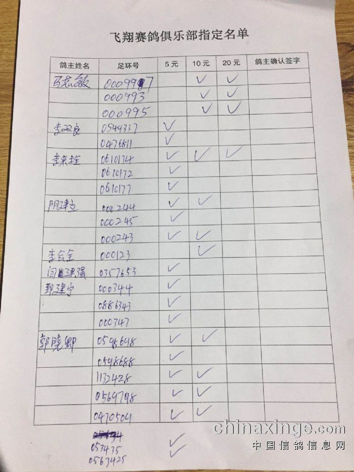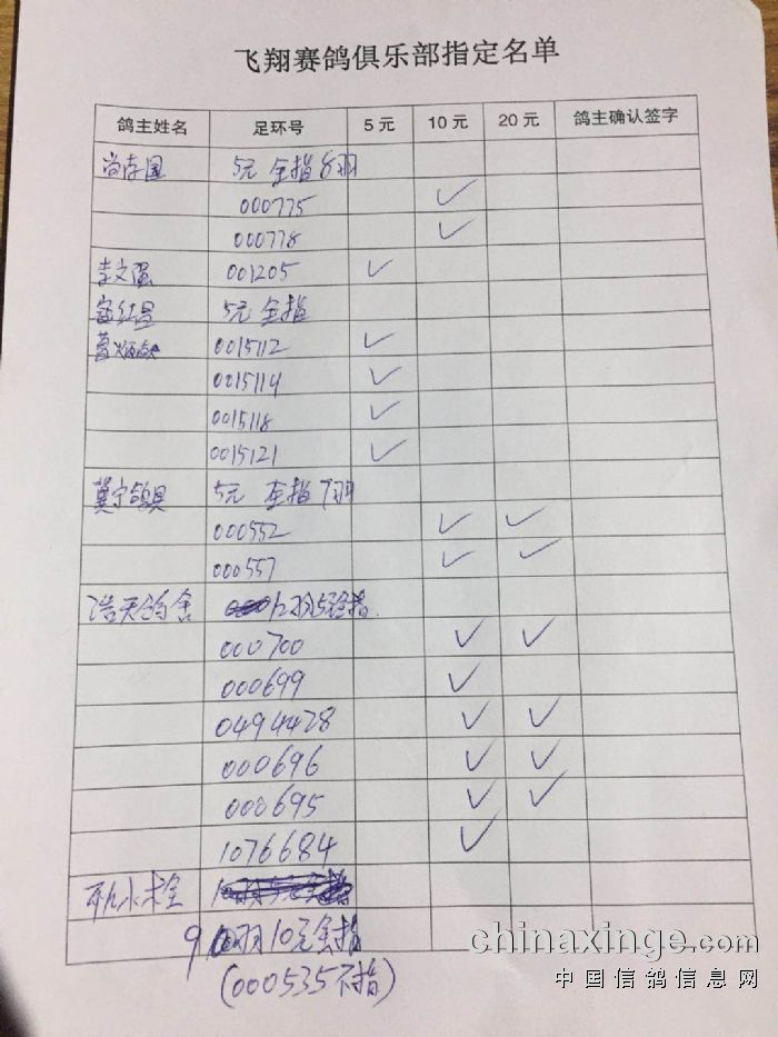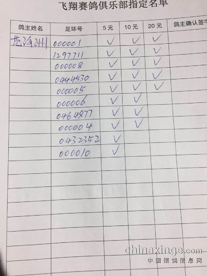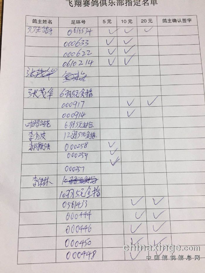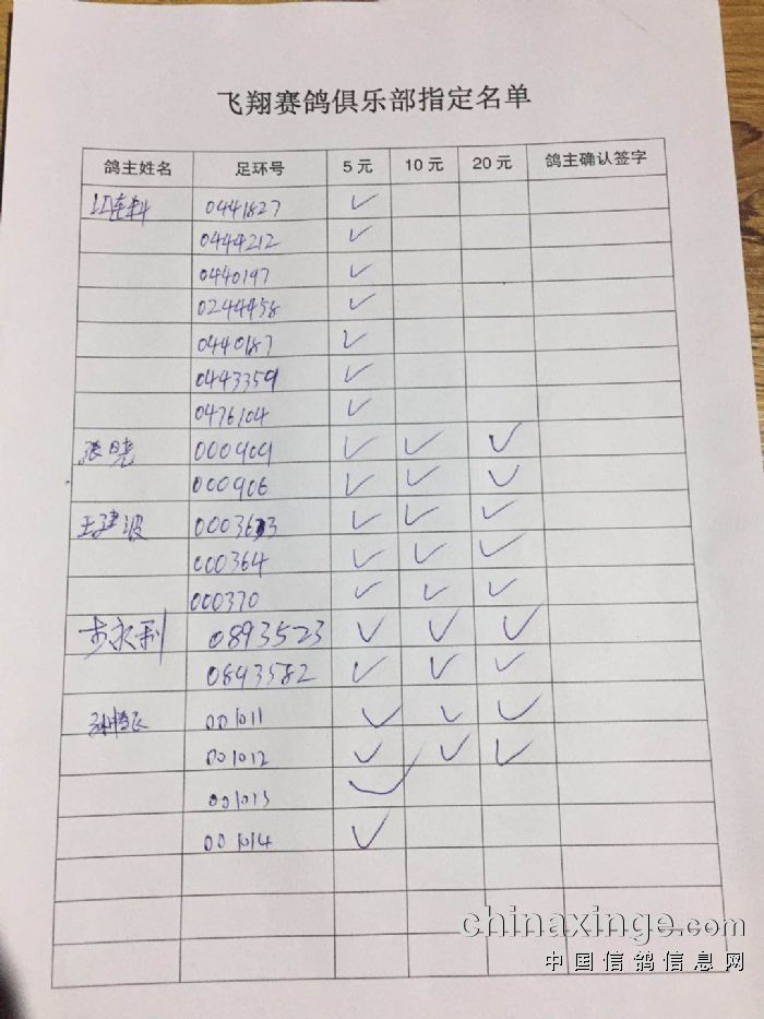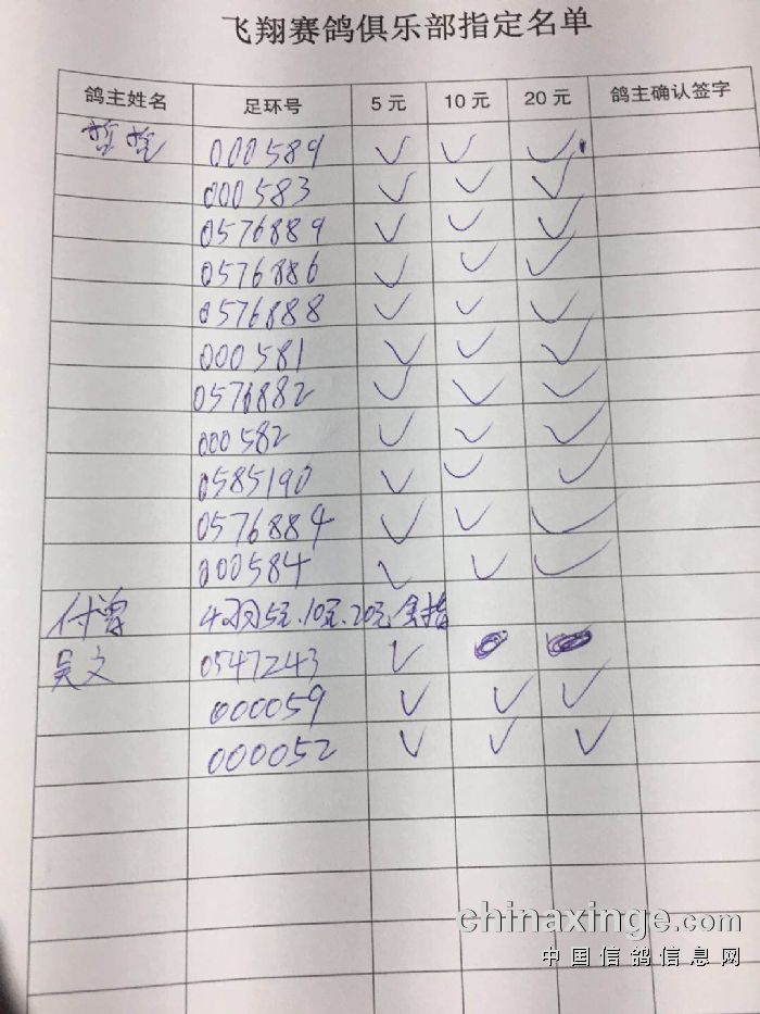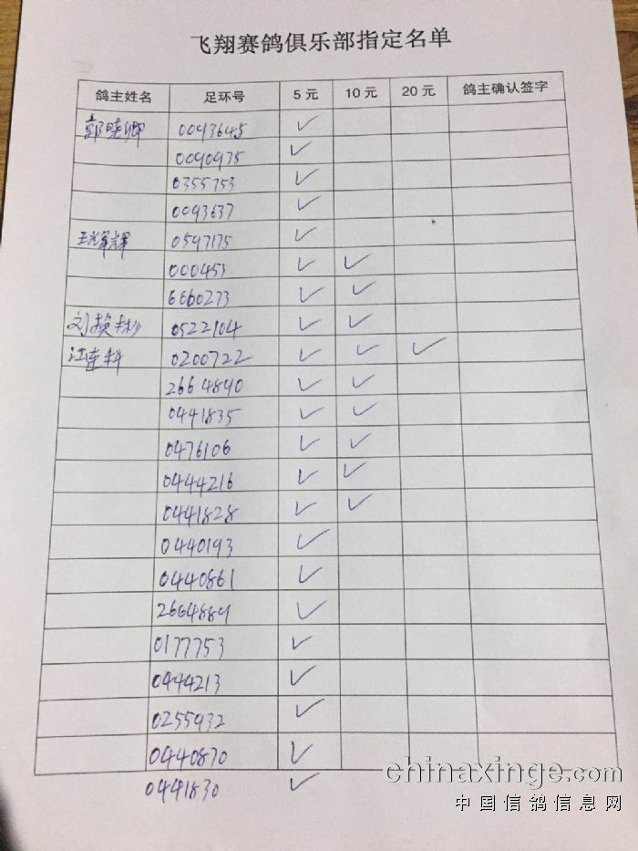 河北宁晋飞翔赛鸽俱乐部330公里速度排名指定赛指定名单