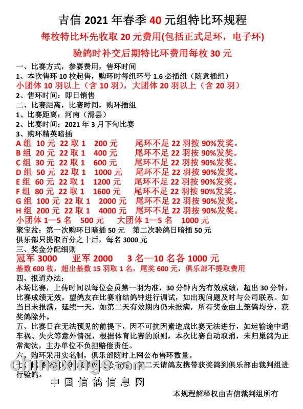 北京吉信赛鸽俱乐部300公里技能赛原单
