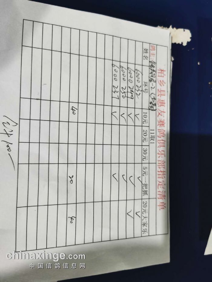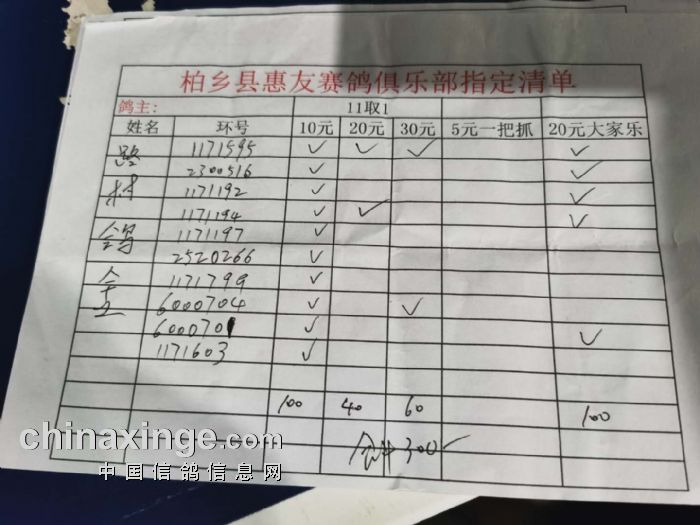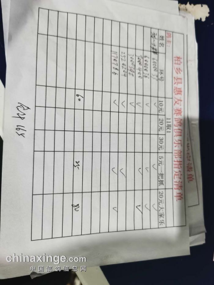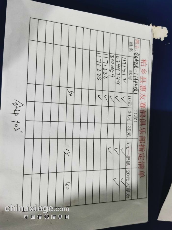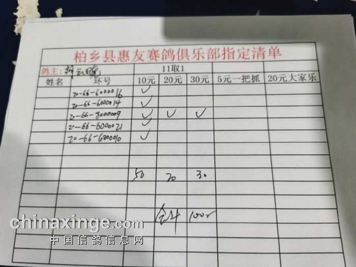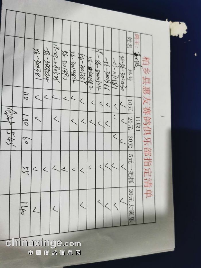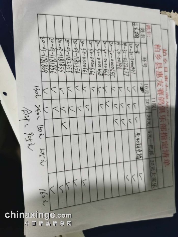2020年秋柏乡县惠友赛鸽俱乐部150公里测试赛指定名单及分配