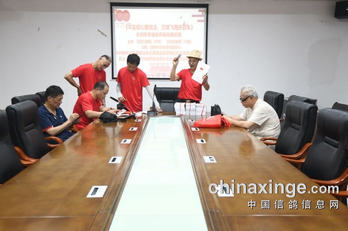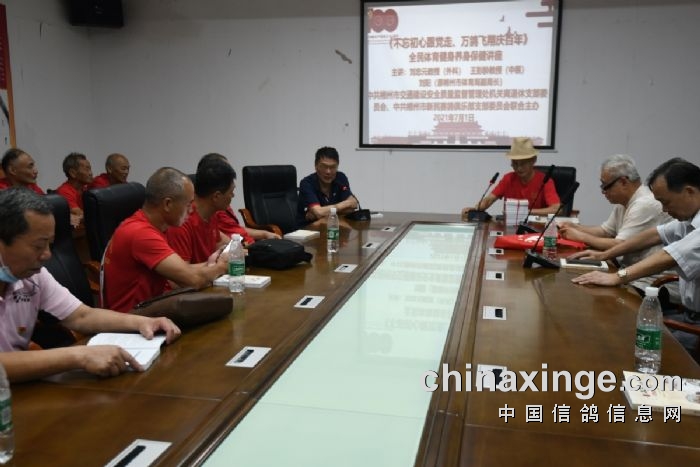 图文简讯:为隆重纪念中国共产党成立100周年,郴州市信鸽协会(郴州市新民赛鸽俱乐部),于2021.7.1建党日上午9:38与全国各省(市)地区信鸽协会同步,在郴州市湘南起义纪念馆前坪,全体参与人员在讴歌“没有共产党就没有新中国”的歌曲后司放信鸽(和平鸽)300羽,然后随导讲参观纪念馆展厅革命史,而后在纪念馆三楼会议室组织《不忘初心跟党走、万鸽飞翔庆百年》全民体育健身养生保健讲座(主讲:刘阳(原郴州市体育局副局长)、刘忠元教授(外科)、王彭龄教授(中医)学习的活动,借以表达革命老区赛鸽人对中国共产党百年华诞的真情祝福。