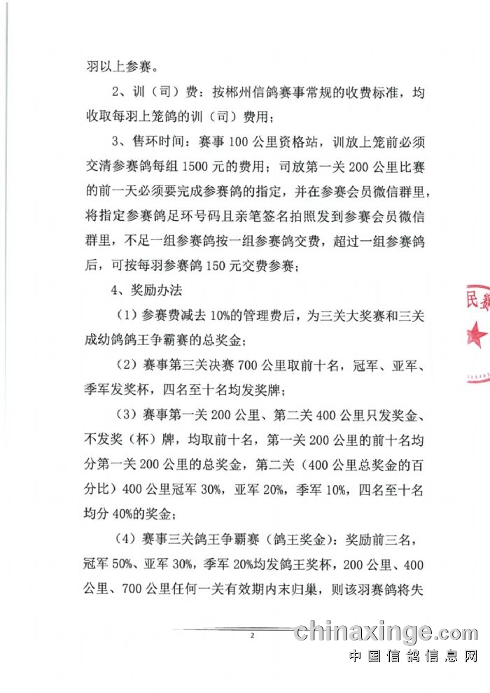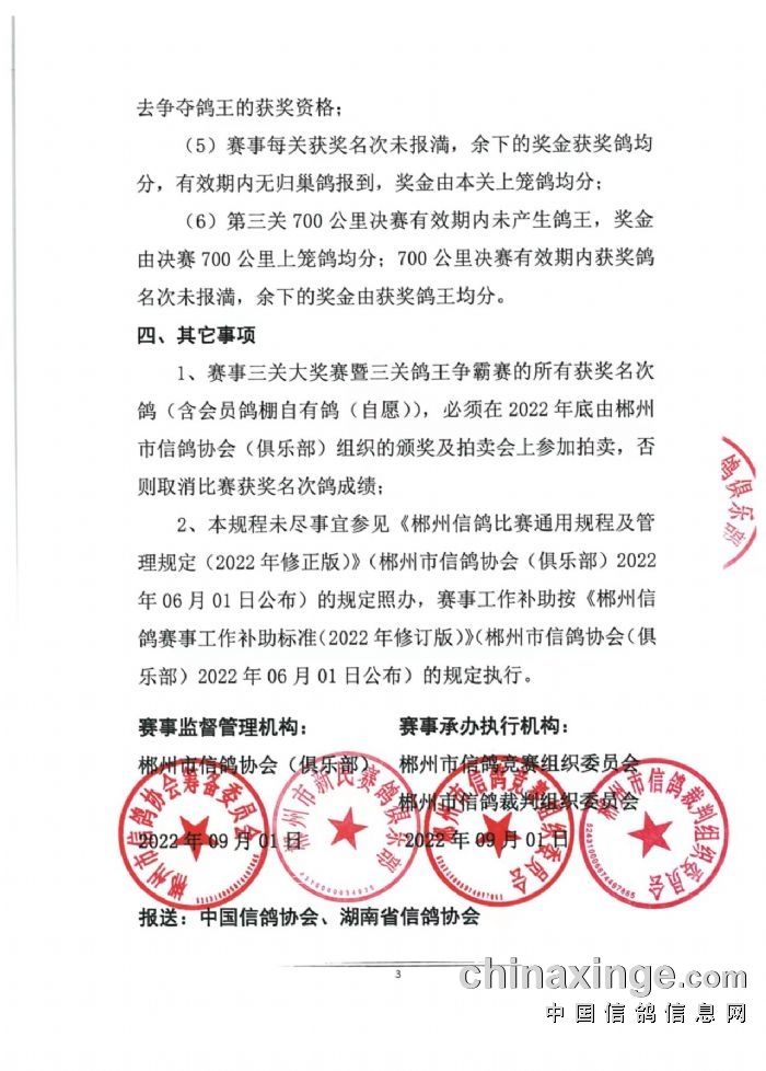 2025年郴州信鸽运动赛事规程及郴州区域信鸽运动赛事工作计划安排 (2025年01月13日改)