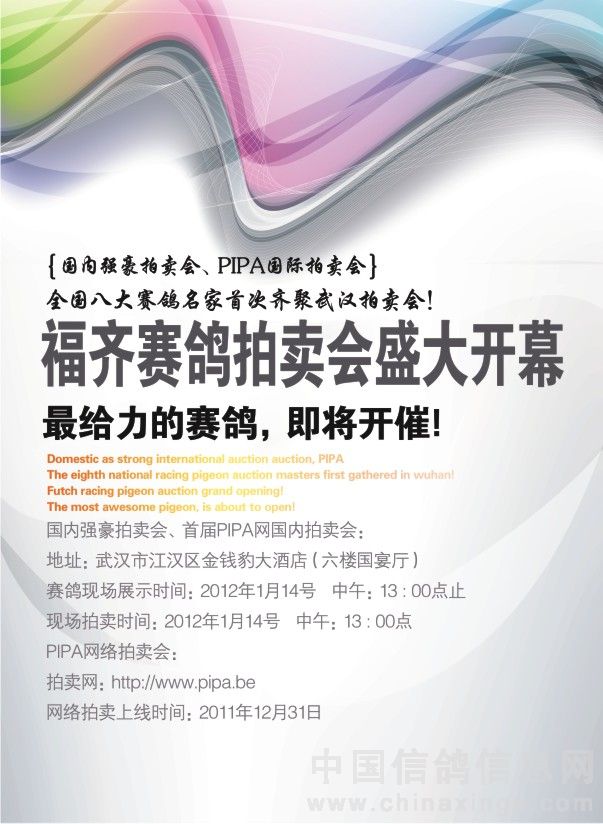 福齐赛鸽俱乐部2000元专环优胜鸽已在PIPA网上线