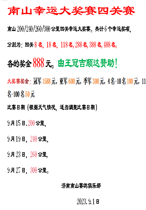 济南南山25秋300公里百日龄决赛及大奖赛(二关)