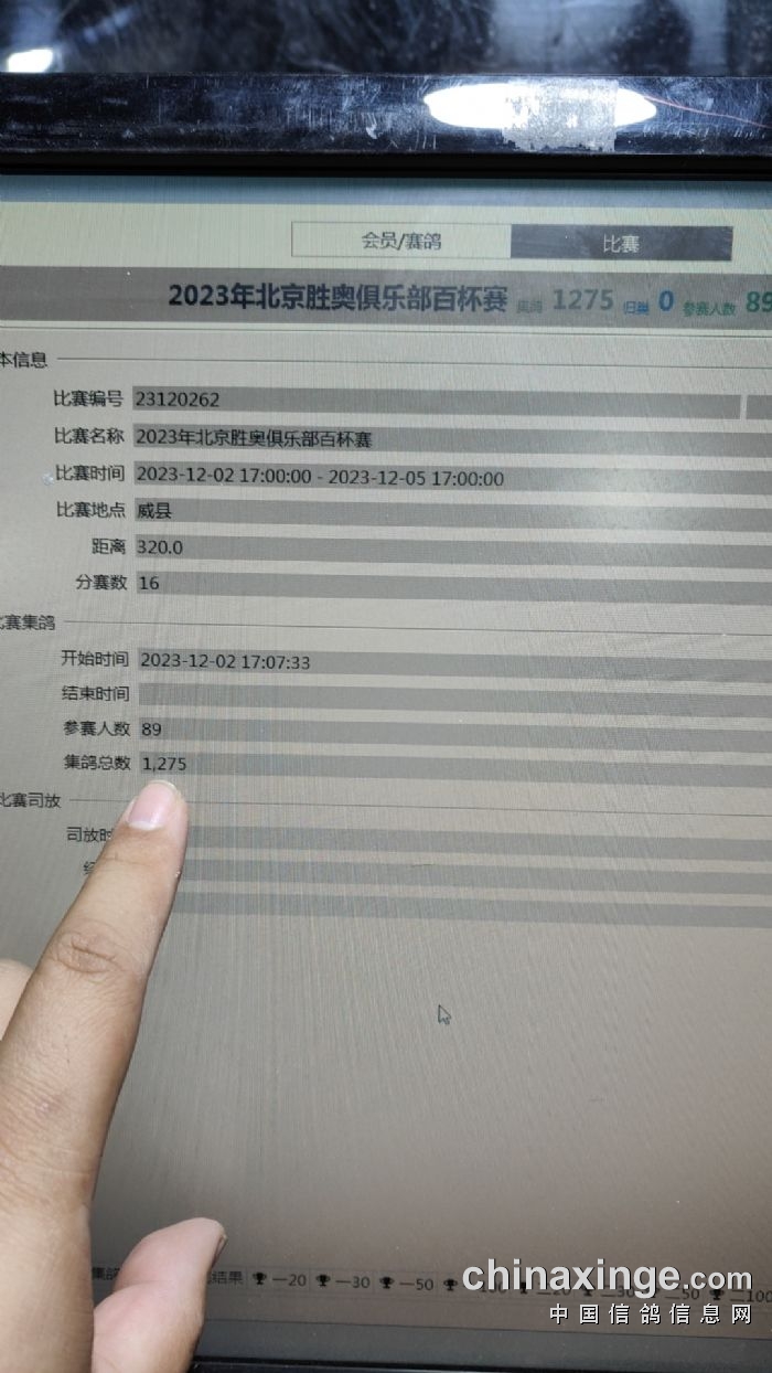 2023年北京胜奥俱乐部百杯赛集鸽1275羽 取115名