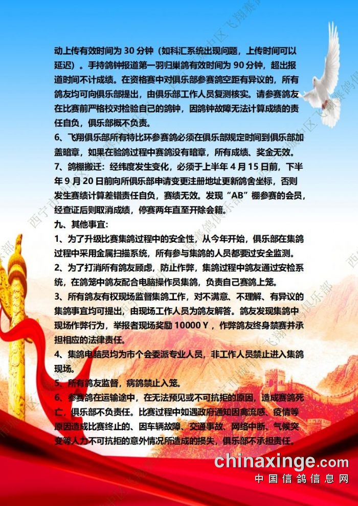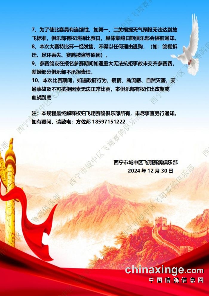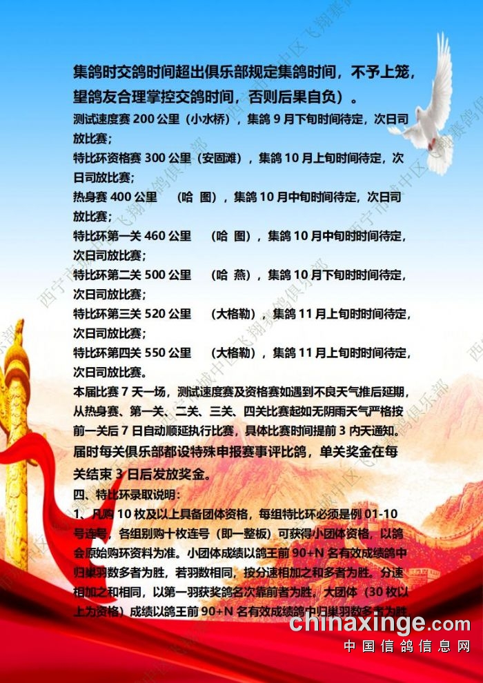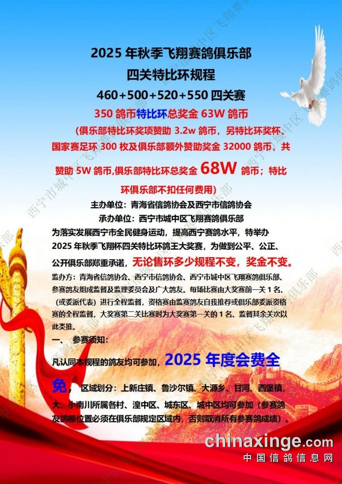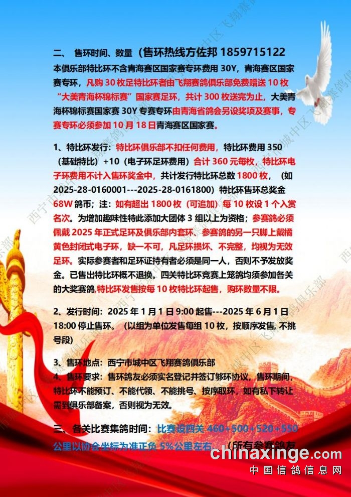 城中区飞翔赛鸽俱乐部2025年特比环补充通知