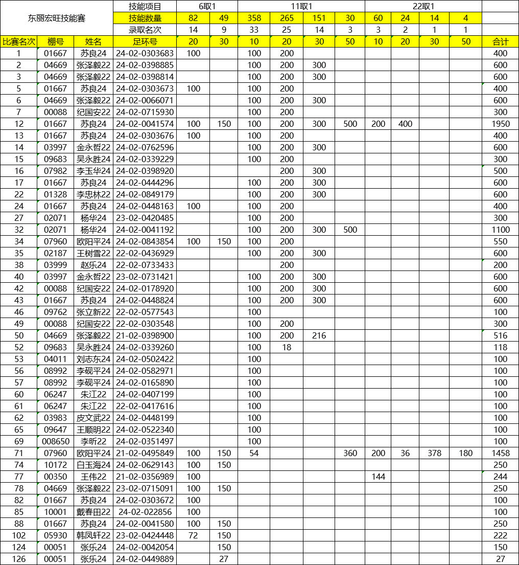 10.21日特比500公里第一关技能赛(暗)临时成绩