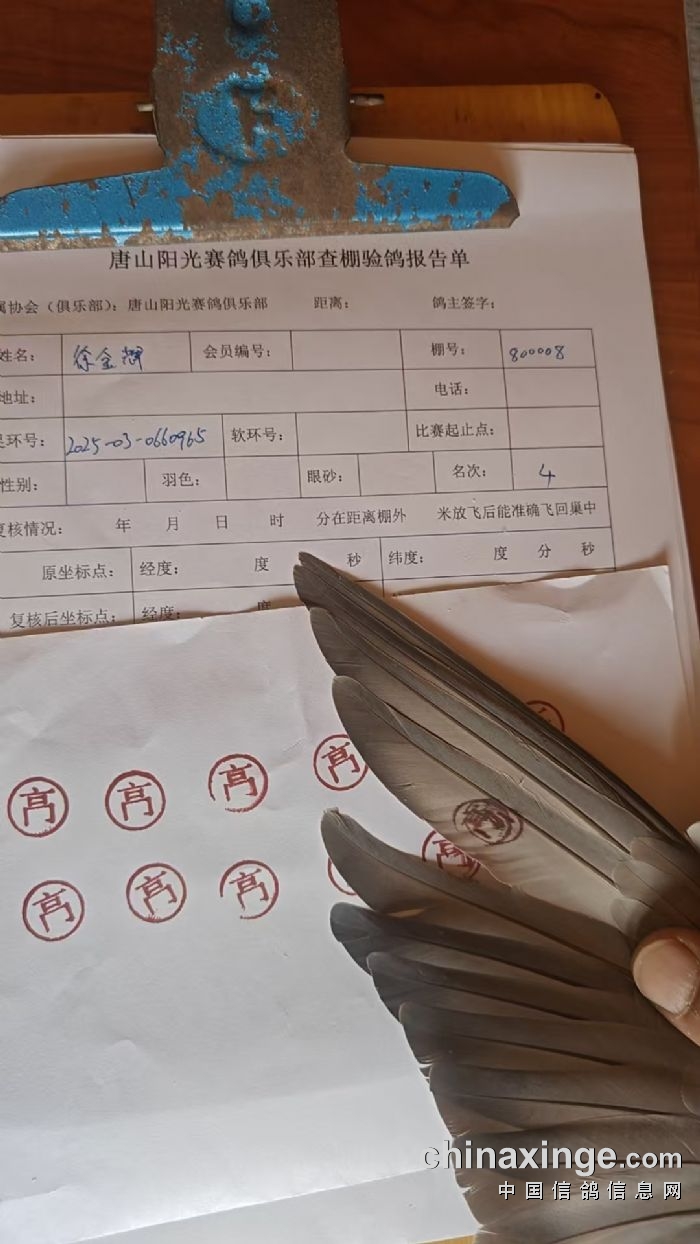 第四名 棚号:800008 棚名:徐金辉 环号:2025-03-0660965