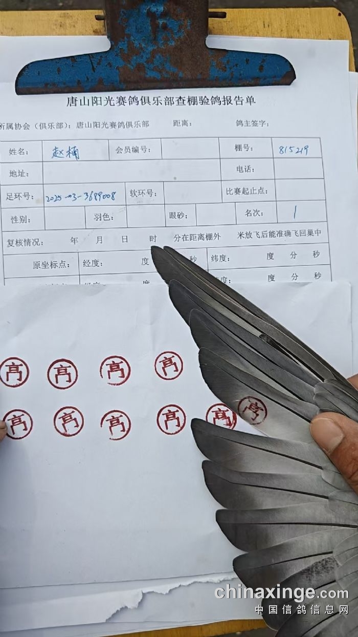 冠军 棚号:815219 棚名:赵楠 环号:2025-03-3689008
