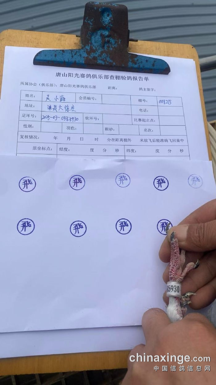 棚号:008213 棚名:吴小海 环号:2025-03-0585930
