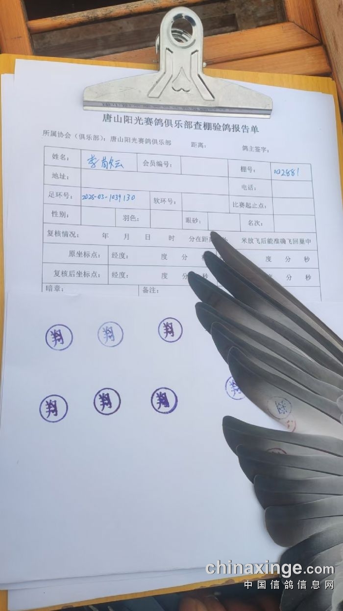 棚号:002881 棚名:李敬云 环号:2025-03-1039130