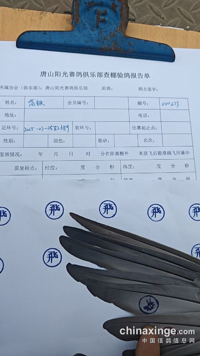 棚号:000273 棚名:范铁 环号:2025-03-0582695
