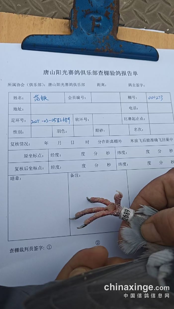 棚号:000273 棚名:范铁 环号:2025-03-0582689