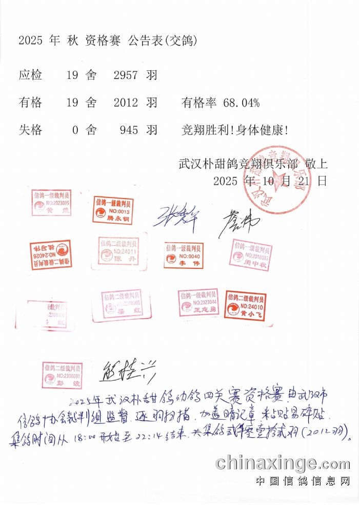2025年武汉朴甜鸽幼鸽四关综合鸽王赛资格赛开笼通知