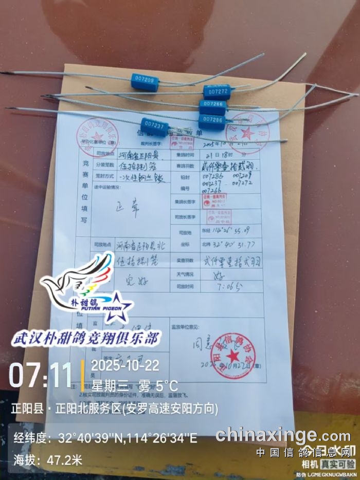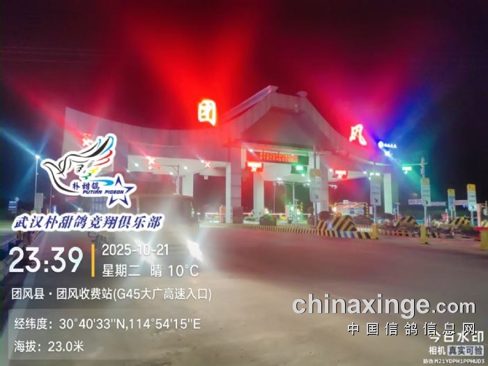 2025年武汉朴甜鸽幼鸽四关综合鸽王赛资格赛,共计集鸽19舍2012羽于2025年10月22日7:06开笼放飞。坐标为东经114°26′55.09″,北纬32°40′31.77″。