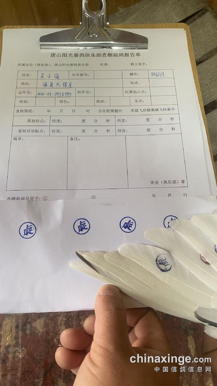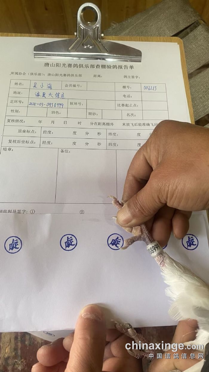 棚号:008213 棚名:吴小海 环号:2025-03-0938999