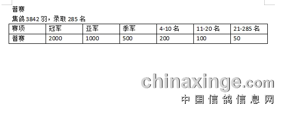 明港普赛(资格赛)集鸽通告