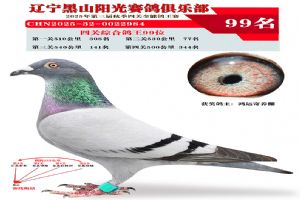 2025年黑山阳光赛鸽俱乐部四关鸽王成绩